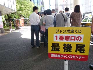 私も一番窓口で宝くじ購入です。10時位になるとマスコミも居なくなり窓口は空いています。