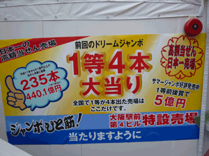 やって来ました浪速のイケイケドンドン宝くじ売場、大阪駅前第4ビル特設売場です。